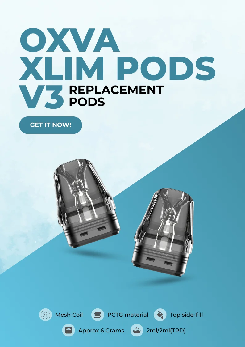 Oxva Xlim Pods V3 Replacement Pods | Only £6.99. Experience 2ml e-liquid capacity and transparent design. Shop the best deal!